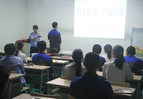 講座中,潘老師緊扣人民關(guān)心的健康話題,用形象生動的語言告訴普康集團職工面對意外情況如何自救和施救,詳細講解了人工呼吸、心臟復(fù)蘇等科學急救方法。并根據(jù)目前的霧霾、甲醛等環(huán)境污染的現(xiàn)狀,提出了針對性的措施。同時針對普康集團職工實際情況,講解了肩周炎、頸椎病、肥胖等職業(yè)病的預(yù)防保健知識。和與會職工開展了多種形式的現(xiàn)場互動,并現(xiàn)場示范中醫(yī)穴位理療,氣氛歡快活躍。